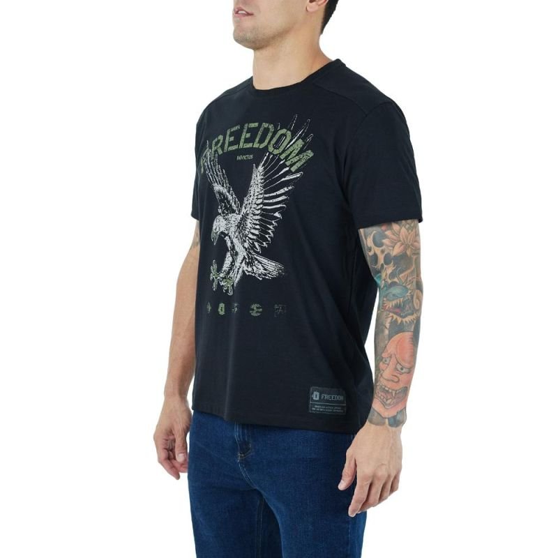 A águia é um animal predador e simboliza a coragem, astúcia e eficiência. Atenta, está protegendo nas grandes alturas e vigilando tudo o que acontece, pronta para atacar com suas afiadas garras quando se sente ameaçada. E é assim que devemos agir perante ameaças aos nossos valores e ideais. Se identifica? Então vá de Camiseta FREEDOM Eagle!