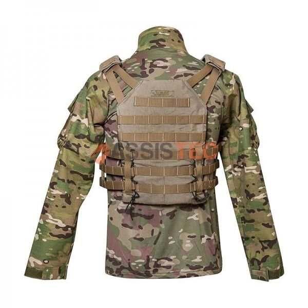 É uma plataforma modular com sistema MOLLE de padrão internacional. Este sistema permite que o operador “monte” seu colete de acordo com seu gosto e necessidade. Assim, basta comprar os bolsos que você quiser e ir acoplando no colete na posição que você desejar.