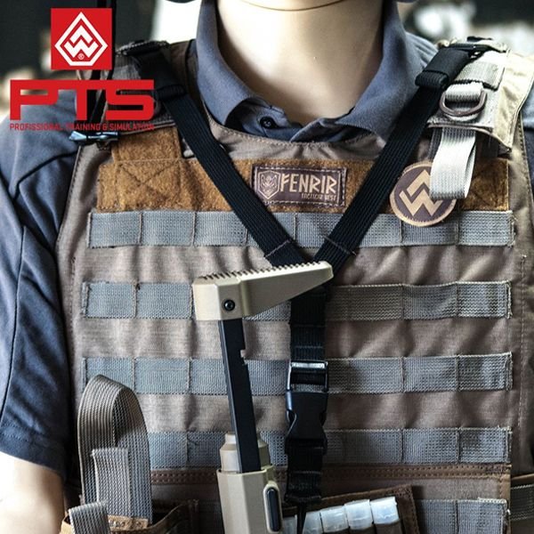 Uma bandoleira formando um Y que auxilia na transição de empunhadura na tomada de ângulos diferentes. Essa bandoleira é fixa na parte M.O.L.L.E de seu colete por fixadores. O tamanho da fita pode ser regulado.