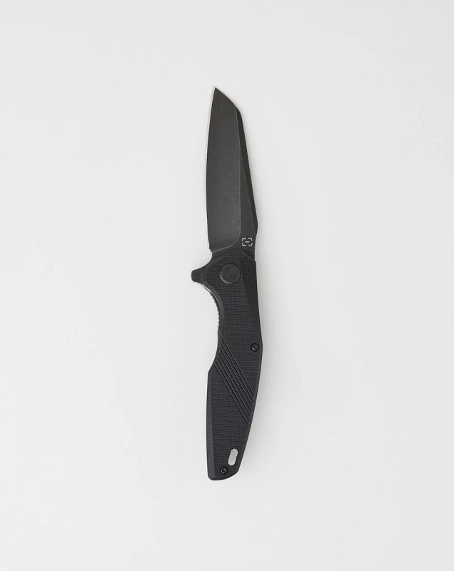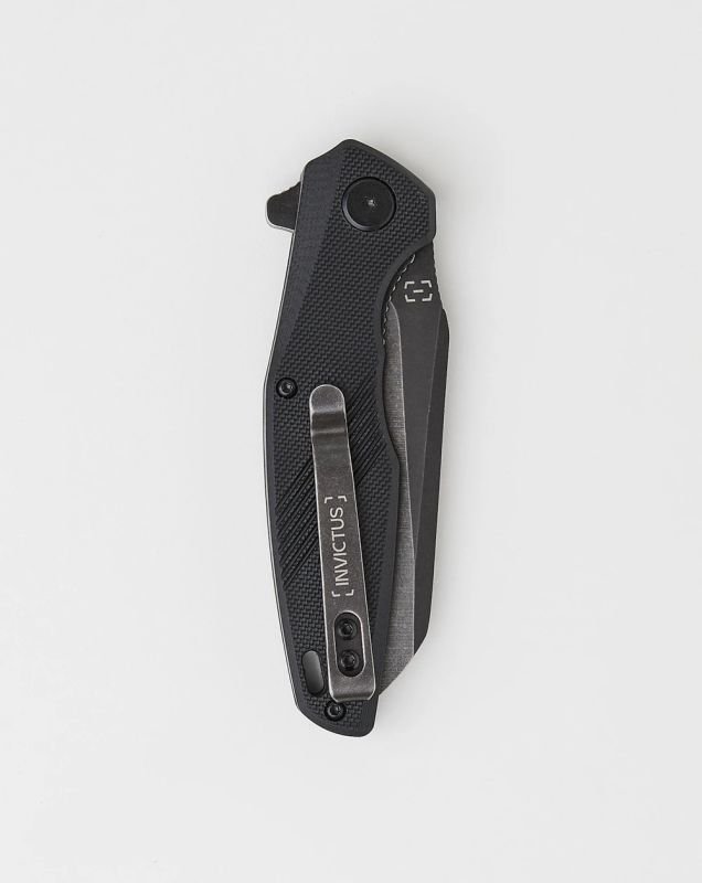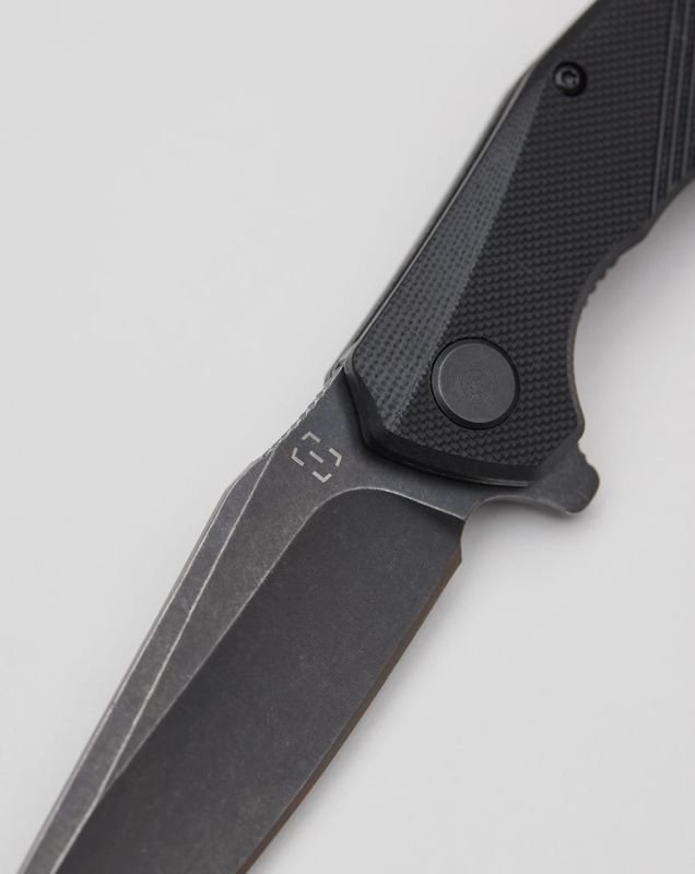 - Lâmina desenvolvida em aço inox 420 e com acabamento escuro Stone Washed.