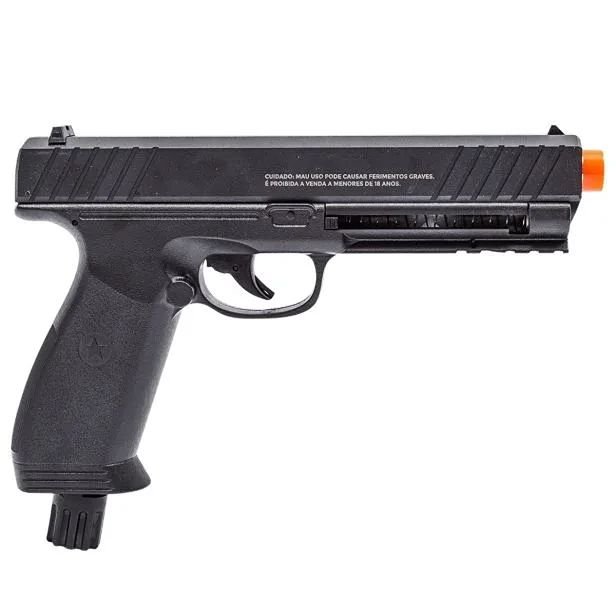 Possui magazine para 6 munições e é compatível com Esferas de borracha, Esferas de Alumínio, Esferas de plástico, paintballs e bolas de pimenta no calibre .50.