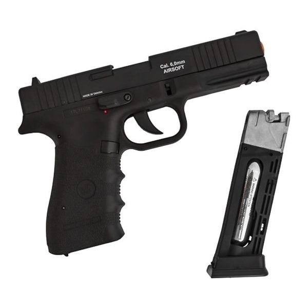 O seu modo de disparo é semi, ou seja, tiro a tiro. E a pistola acompanha um Magazine com capacidade para até 12 BBs.