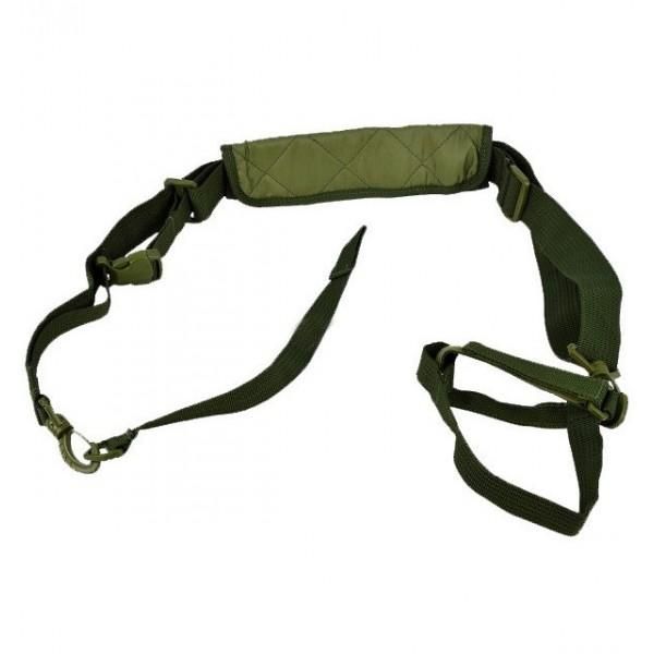 A bandoleira permite transições suaves de posições de tiro, ajuda manter a precisão da arma, a rapidez de reação e também o conforto de quem usa o equipamento. A bandoleira 3 pontas permitem você amochilar sua arma, melhorando seu movimento e deixando suas mãos livres. Bastante utilizada em espingardas, escopetas e metralhadoras.