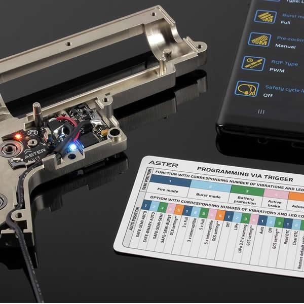 ASTER V2 é um irmão mais novo do conhecido TITAN V2. O primeiro sistema de controle AEG de quarta geração deste mundo é destinado a caixas de velocidades V2 (incluindo estoque, afinação baixa e média) e até para armas afinadas (no caso de firmware EXPERT). Ele foi projetado para obter confiabilidade máxima a um preço atraente e, portanto, possui uma relação preço-desempenho extremamente lucrativa. Transforme seu AEG substituindo os contatos do gatilho por um controlador computadorizado equipado com sensores ópticos inovadores. Obtenha uma vantagem tática única graças à resposta extremamente rápida do gatilho e muitas outras funções úteis. O fusível inteligente do ASTER protege a bateria, o motor e o controlador do AEG, mesmo em caso de conexão reversa da bateria. Esse recurso, junto com os sensores ópticos, faz do ASTER a unidade de armazenamento mais durável do mercado. Você escolhe como configurar o ASTER – simplesmente via gatilho ou através do USB-Link / Blu-Link * e do nosso aplicativo GCS avançado. Para aproveitar todo o potencial do ASTER, você pode atualizar o firmware para ADVANCED ou EXPERT.