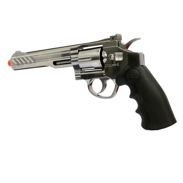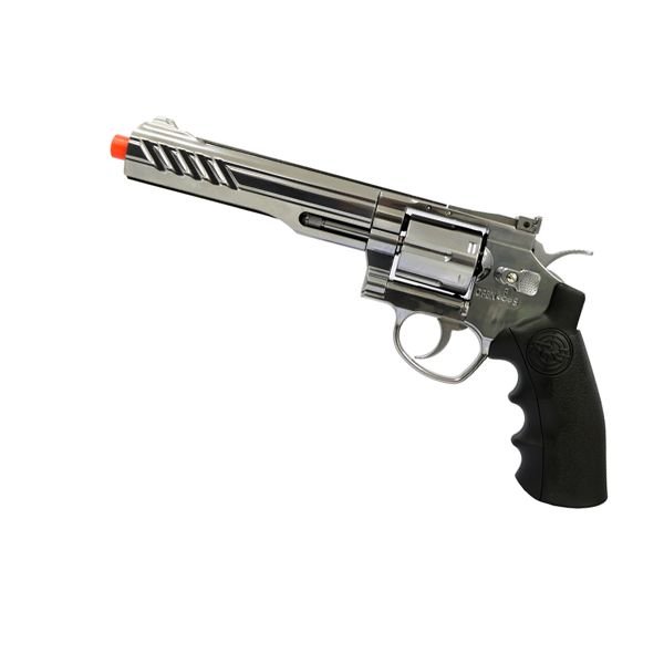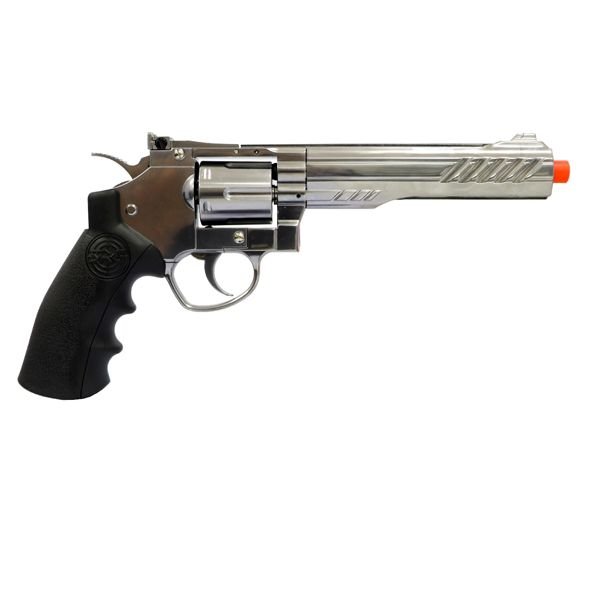 Esta série Revolver Co2 Src tem um cano de 6 polegadas e é totalmente metálica, com um punho moldado para fácil carregamento de cartuchos.Achamos que este revólver de airsoft é um dos melhores que já vimos.Assim para operar este revólver você precisará de cilindros de CO2 e BBs de 6mm polidos de alta qualidade.